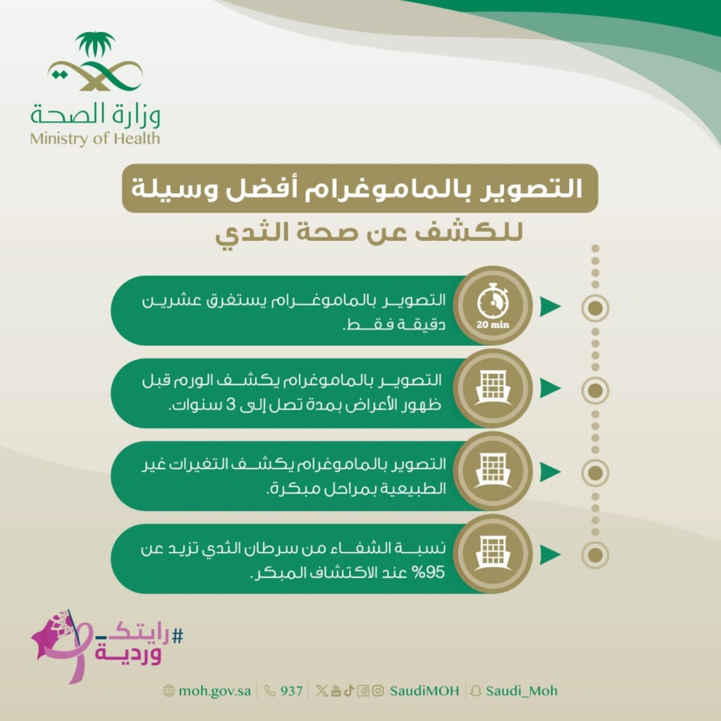 عددت وزارة الصحة، مميزات فحص سرطان الثدي بتقنية “الماموغرام” في ظل الحاجة إلى الاكتشاف المبكر للمرض من أجل التعامل معه.