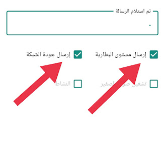 3- بإمكانك تحديد خياري ” إرسال مستوى البطارية ” و ” إرسال جودة الشبكة ” لمعرفة نسبة شحن البطارية عند الطرف الآخر وجودة الشبكة.