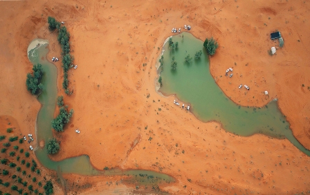 ففي محافظة الزلفي المعروفة برمالها ومنتزهاتها البرية، وثقت كاميرا المصور السياحي “خالد السبت” تجمعات السيول في النفود من خلال مجموعة من الصور (ضمن صور ألوان السعودية) بهيئة السياحة والتراث الوطني.