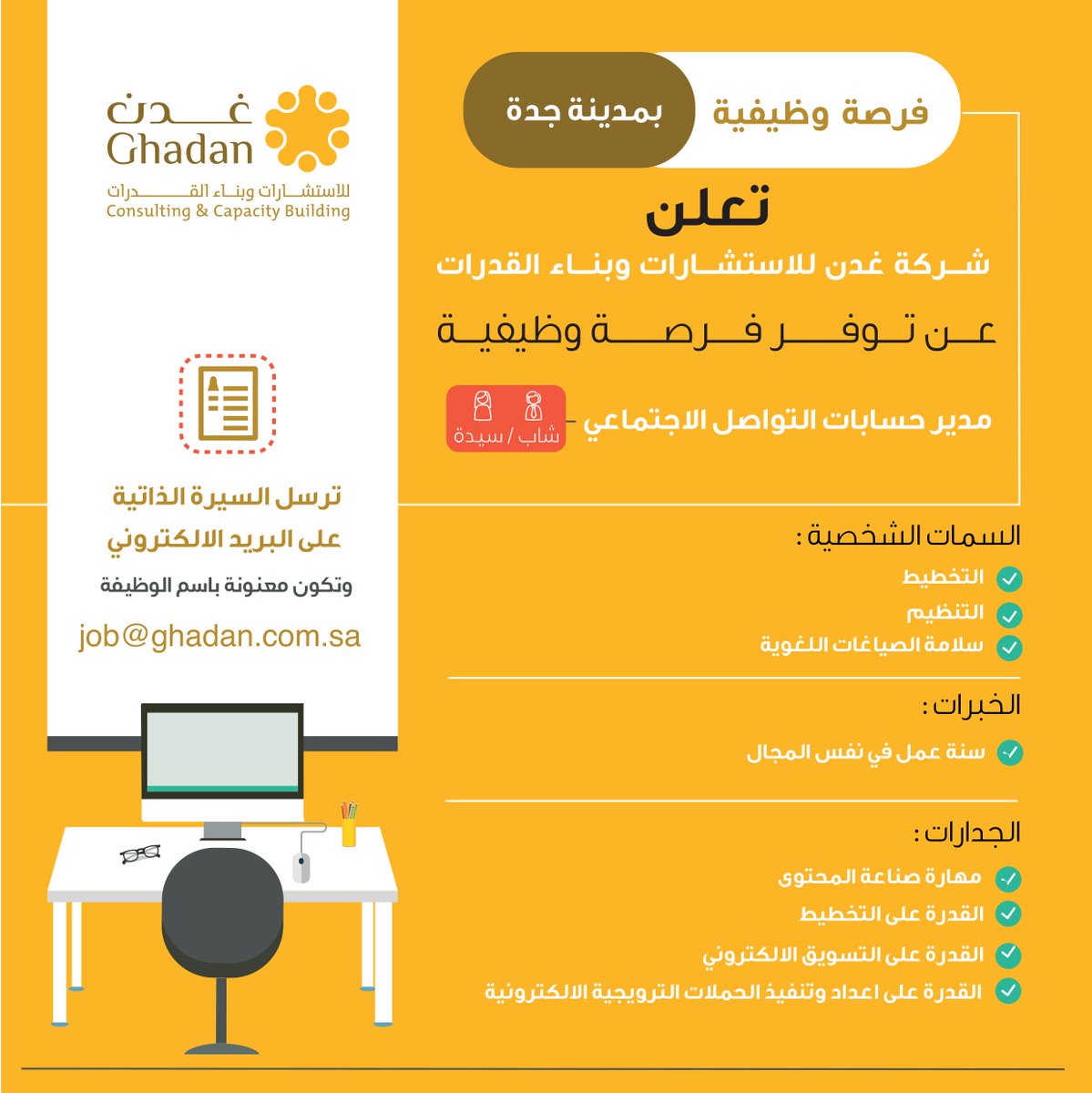اذا كنت مؤهلاً لأحد هذه الوظائف ارسل السيرة الذاتية على : job@ghadan.com.sa