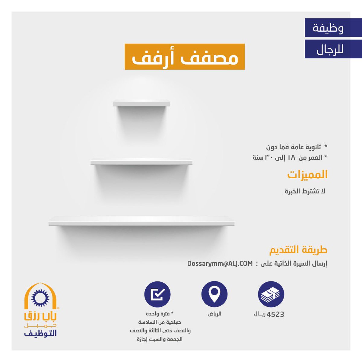 طريقة التقديم: - إرسال السيرة الذاتية إلى البريد الإلكتروني التالي Dossarymm@alj.com