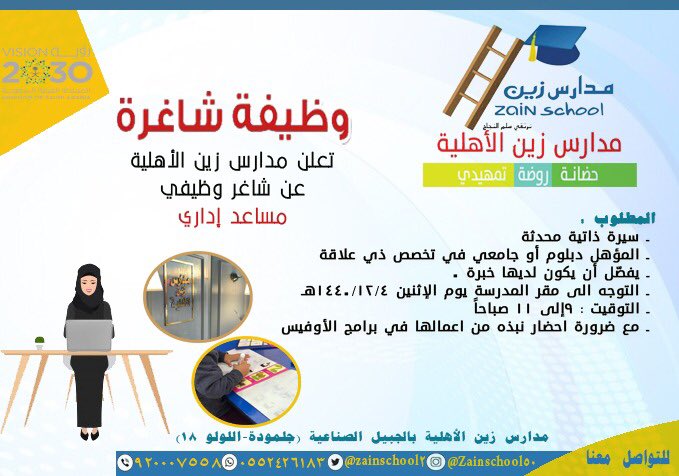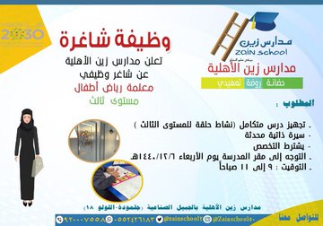 تعلن مدارس زين الأهلية عن وظــائف شاغرة