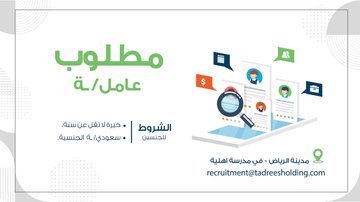 تعلن شركة تدريس عن وظائف شاغرة للتقديم عبر البريد الالكتروني: recruitment@tadreesholding.com